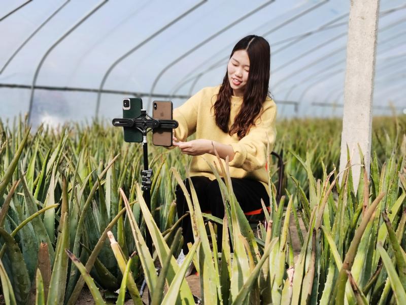 12月7日,川匯區(qū) 華耀城辦事處葛灣村孫立偉的蘆薈大棚里在進行直播賣貨。周口市川匯區(qū) 華耀城辦事處葛灣村發(fā)展種植大棚蘆薈,成為當?shù)氐奶厣?jīng)濟產(chǎn)業(yè),并成立集體經(jīng)濟組織合作社,全村統(tǒng)一規(guī)劃,結合市場需求規(guī)律,由合作社與企業(yè)簽訂訂單或通過電商平臺進行網(wǎng)絡銷售。①15