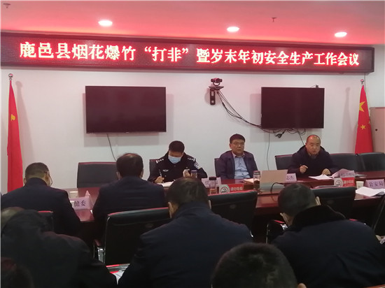 12月10日上午,在國家和省安全生產(chǎn)工作視頻會議結(jié)束后,鹿邑縣委常委、常務(wù)副縣長陸志杰,副縣長、縣公安局長任金瑞立即組織召開專題會議,對全縣煙花爆竹“打非”和歲末年初安全生產(chǎn)重點(diǎn)工作進(jìn)行安排部署。