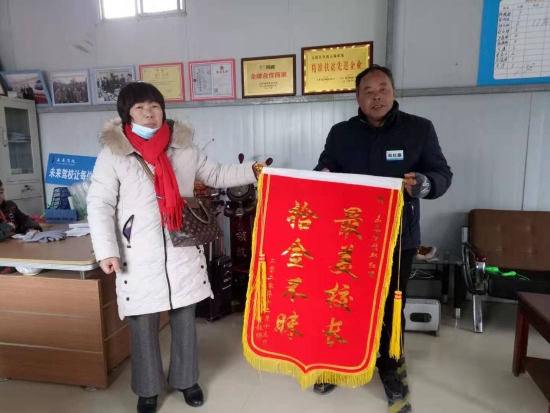 12月13日,感激萬分的謝女士帶著錦旗專門趕赴駕校,向鄭紅旗表示感謝。③5