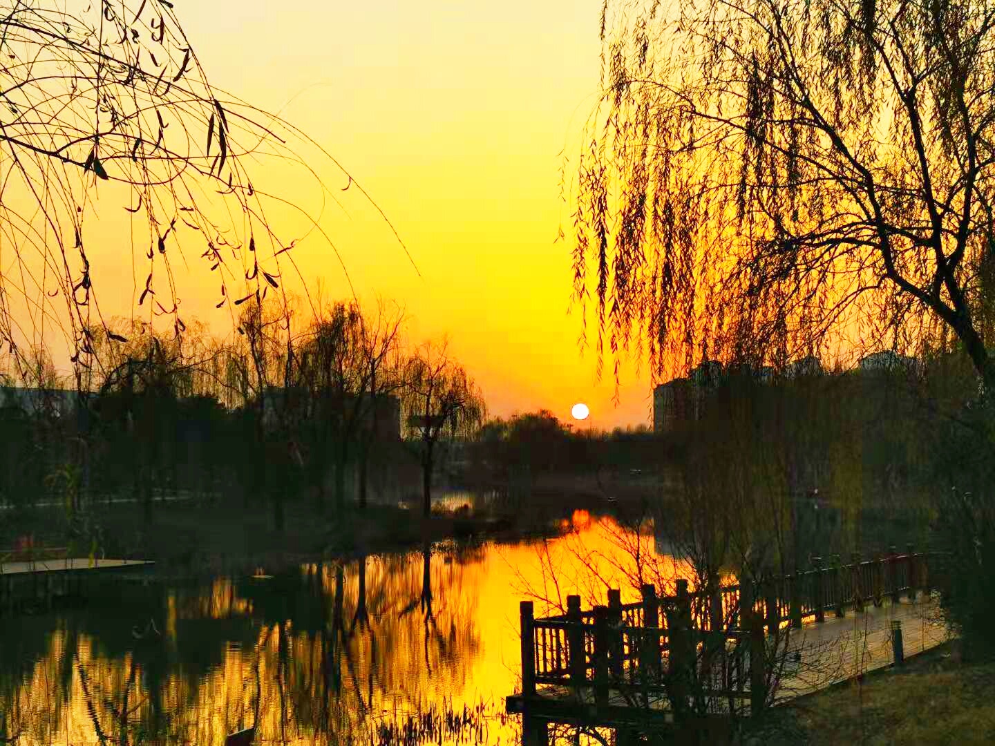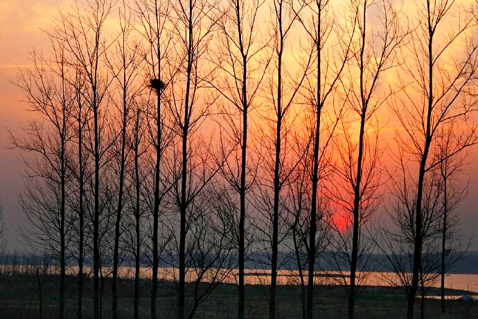 近日,我市天氣晴朗,冬日暖陽格外讓人欣喜。尤其是黃昏時分,太陽慢慢收斂起刺眼的光芒,從天際一點點垂落,和寒水、樹枝一起,形成了一副絕美的畫卷。③6
