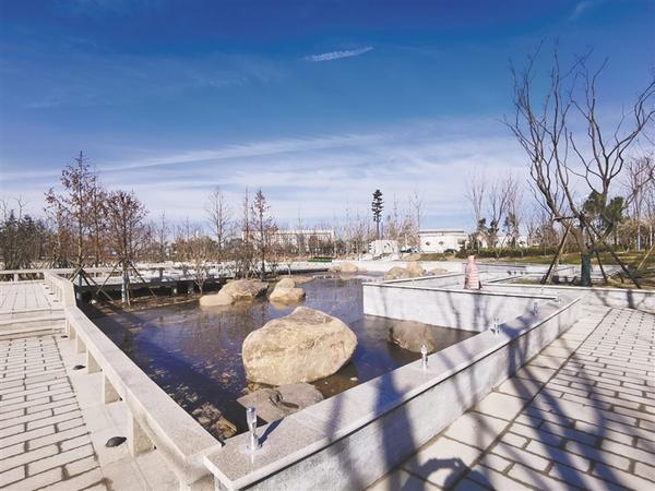 2020年12月31日,中心城區(qū)水系綜合治理書香文苑園區(qū)完工,向市民開放。書香文苑園區(qū)位于文昌大道與政通路交叉口西南角,是洼沖溝水系治理的一部分。園區(qū)內(nèi)突出周口毛筆之鄉(xiāng)文化元素、建設生態(tài)綠色林帶、布置觀景濱水平臺等內(nèi)容,建有兩處廣場、景觀旱噴、濱水平臺、文化地雕等設施,為市民增加一處活動休閑的地方。記者 孫安平 攝
