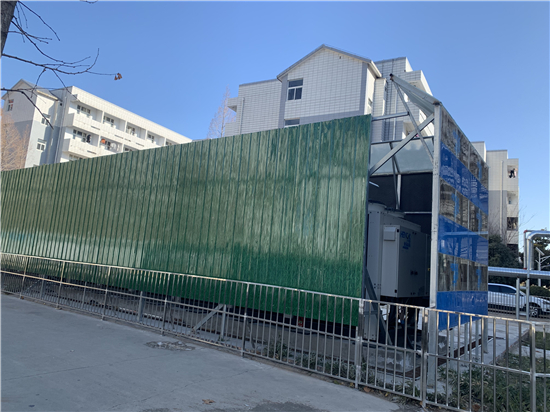 2020年12月30日上午,記者在位于嵩山路的周師西門處,隱約聽到“轟轟”聲,在周師西門向北約300米處,透過白色柵欄,記者看到一組被綠色鐵皮圍起來的空調(diào)外機(jī),外機(jī)總長約20米,寬約5米,機(jī)組運(yùn)行發(fā)出“轟轟”的響聲。