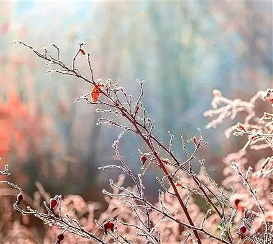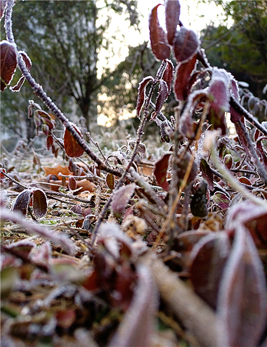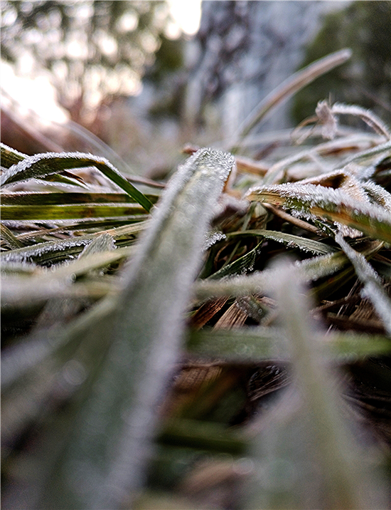 有詩云:“早寒青女至,零露結(jié)為霜。入夜飛清景,凌晨積素光?!?月6日,清晨時分,我市中心城區(qū)一層層雪白的霜花凝結(jié)在花草樹木等植物上,晶瑩剔透,令人驚艷,尤其在晨光的映照下,滿目的霜花就像一層銀光,把世界裝點(diǎn)得格外美麗。③2