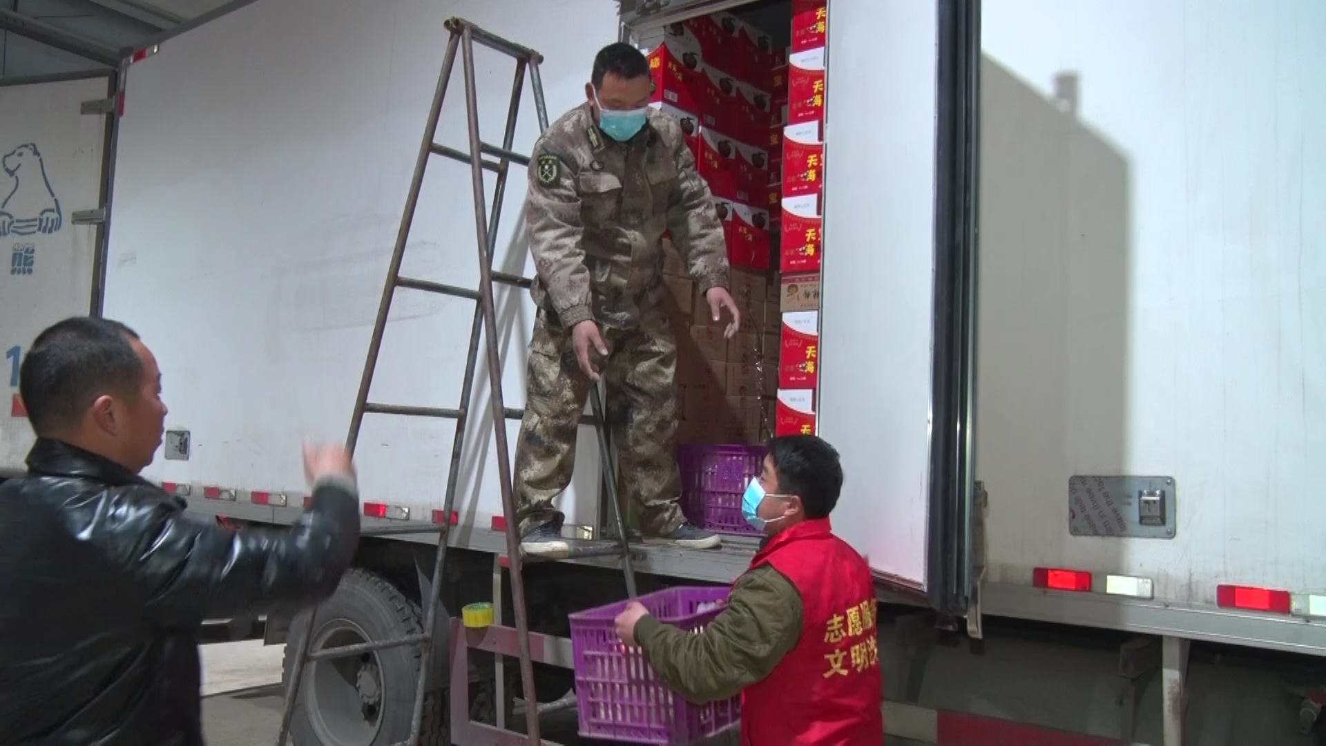 王國輝說:“咱們對接的就是河北南宮市,但是南宮市的工作人員考慮到咱們的安全,也不讓咱們進入南宮的地域,而是去衡水,衡水是低風(fēng)險,現(xiàn)在不在風(fēng)險區(qū),這是對方為我們著想。我們把貨到了衡水的外圍一個指定的開闊地方,我們把貨卸下來,我們撤離,然后南宮的同志再過來,轉(zhuǎn)運到他們車上去。”