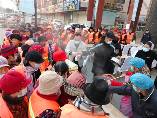 活動(dòng)當(dāng)天,在鑫豐苑·瑞隆府售樓部門口彌漫著臘八粥的香味。為了能讓大家喝到新鮮的臘八粥,這家愛心企業(yè)人員凌晨4點(diǎn)就開始忙碌了,在做好疫情防控的前提下,他們仔細(xì)挑選材料、淘洗、入鍋,經(jīng)過兩個(gè)多小時(shí)的精心熬制,終于讓大家吃上了甜甜糯糯的臘八粥。暖暖的臘八粥,讓大家共同感受節(jié)日的氣氛。"打掃衛(wèi)生來得早,沒時(shí)間為家人熬粥,喝了這一碗熱乎乎的臘八粥,感覺渾身暖乎乎的",環(huán)衛(wèi)工人李女士說。