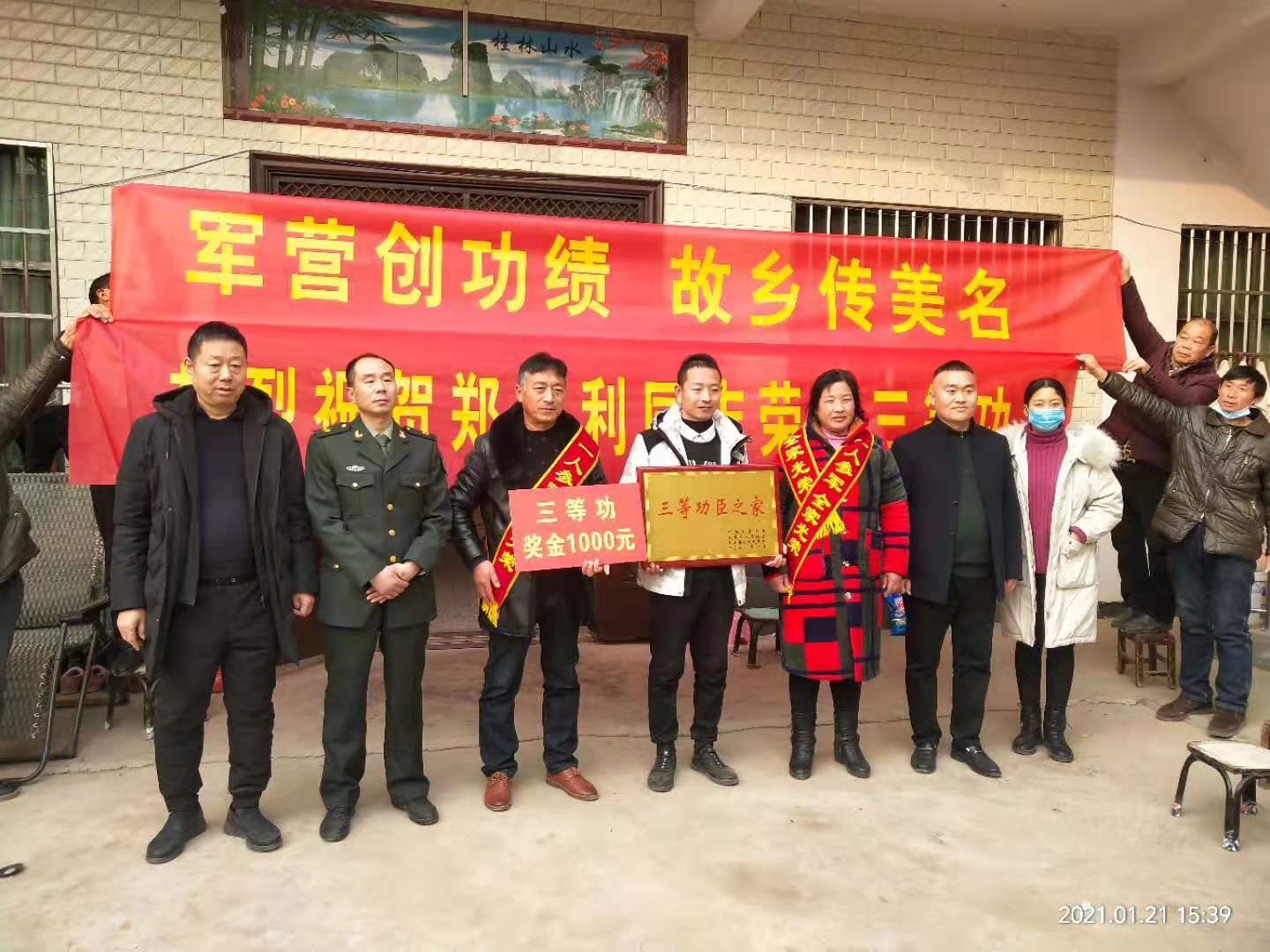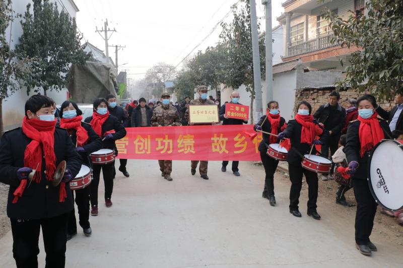 1月21日下午,太康縣高賢鄉(xiāng)保渡村現(xiàn)役軍人程勝杰家門前鑼鼓喧天,喜氣洋洋,熱鬧非凡。太康縣委常委、縣人武部部長于永前,政委郭立君,縣退役軍人事務局局長潘布道,高賢鄉(xiāng)黨委書記鄭宏等相關領導一行,為榮立二等功的程勝杰家屬送來了立功喜報、“二等功臣之家”牌匾及5000元慰問金。