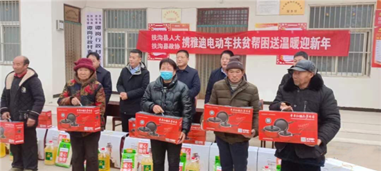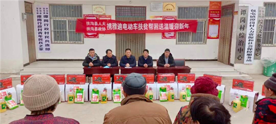 1月25日,扶溝縣人大常委會機關(guān)聯(lián)合愛心企業(yè),到扶溝縣包屯鎮(zhèn)譚崗行政村舉行愛心扶貧捐贈活動。