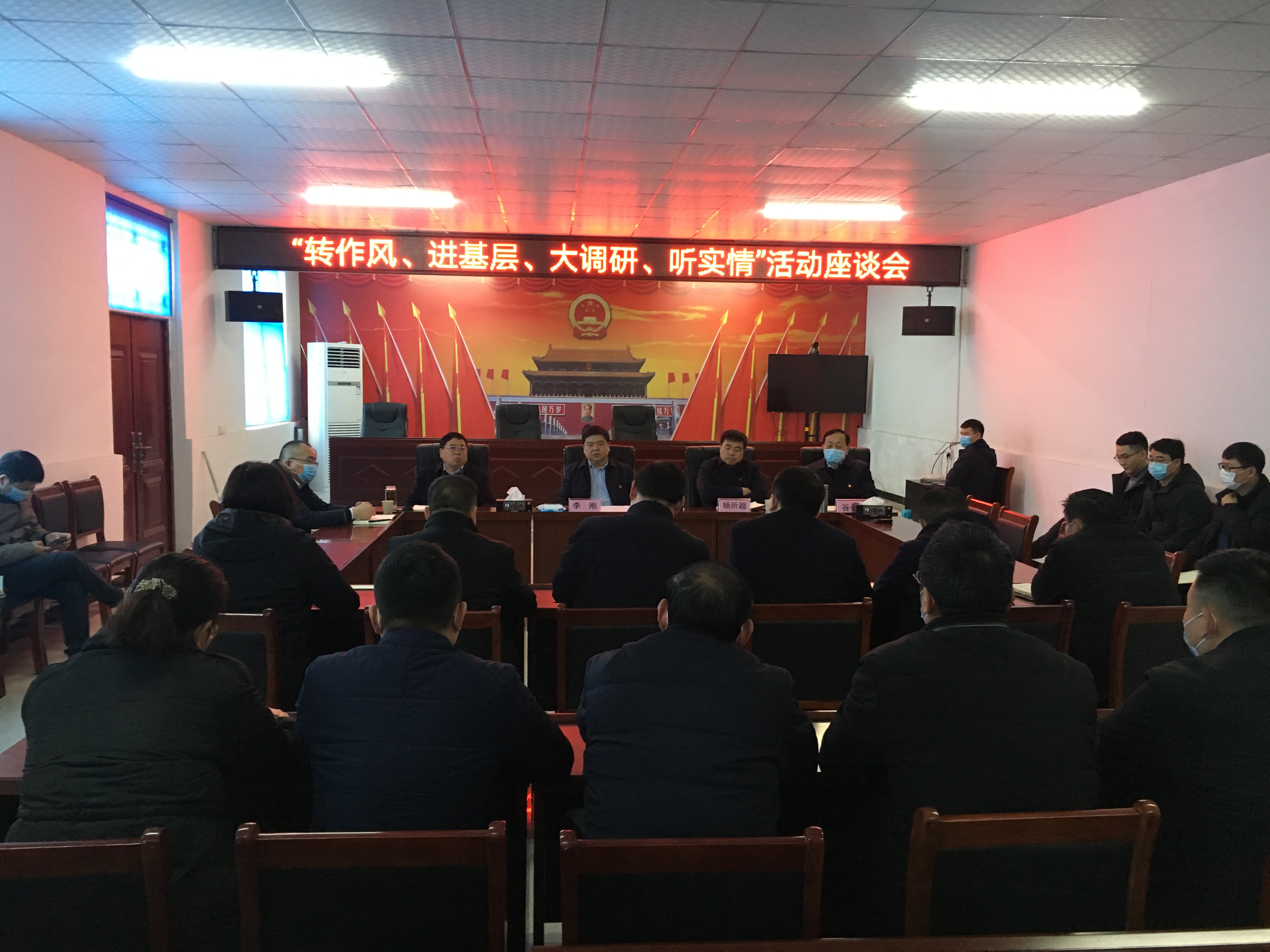 慰問結(jié)束后,李剛一行到衛(wèi)真辦事處開展"轉(zhuǎn)作風(fēng)、進基層、大調(diào)研、聽實情"活動,召開座談會,聽取辦事處工作匯報,并圍繞基層社區(qū)黨建、經(jīng)濟發(fā)展思路、疫情防控、城市管理、信訪穩(wěn)定等工作進行座談交流。調(diào)研組工作人員、衛(wèi)真辦事處全體班子成員及后備干部參加座談。