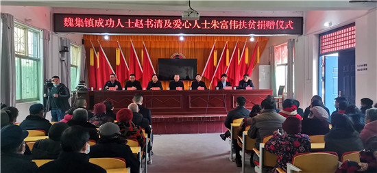 1月29日,天氣乍暖還寒,魏集鎮(zhèn)政府人頭攢動,喜氣洋洋,一片熱鬧的景象。內(nèi)蒙古希拉穆仁旅游置業(yè)開發(fā)有限公司董事長、內(nèi)蒙古楊子照明鋼桿制造有限責任公司董事長、內(nèi)蒙古周口商會會長趙書清和愛心人士朱富偉一行,帶著整整兩卡車米、面、油共計八萬元生活物資,回到家鄉(xiāng)魏集鎮(zhèn)開展扶貧濟困活動,在嚴寒的冬日給魏集鎮(zhèn)困難群眾帶來了溫暖和祝福。縣政協(xié)主席孫培忠,縣委常委、宣傳部長李本磊出席活動。魏集鎮(zhèn)黨委書記衛(wèi)春忙,鎮(zhèn)長劉艷光參加活動。