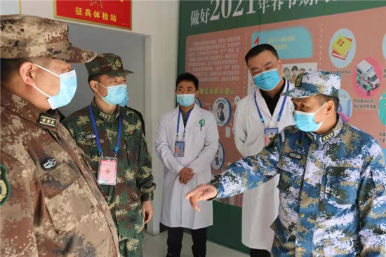 湯維政走進內(nèi)科、外科、五官科、心電圖、心理測試等檢查科室,實地查看體檢站基礎設施、體檢流程、人員配備、疫情防控、后勤保障等情況。他看到體檢場所按照流程合理、尊重隱私、閉環(huán)管理的要求,結(jié)合疫情防控的需求優(yōu)化診室設置,醫(yī)務人員嚴格把控體檢項目的各個關(guān)口,給予了肯定和贊揚。湯維政與現(xiàn)場候檢的應征青年親切交談,了解他們的年齡、學歷、家庭等情況,對適齡青年、大學畢業(yè)生踴躍參軍、報效祖國的行為表示贊賞,勉勵他們積極接受祖國挑選,投身軍營建功立業(yè)。