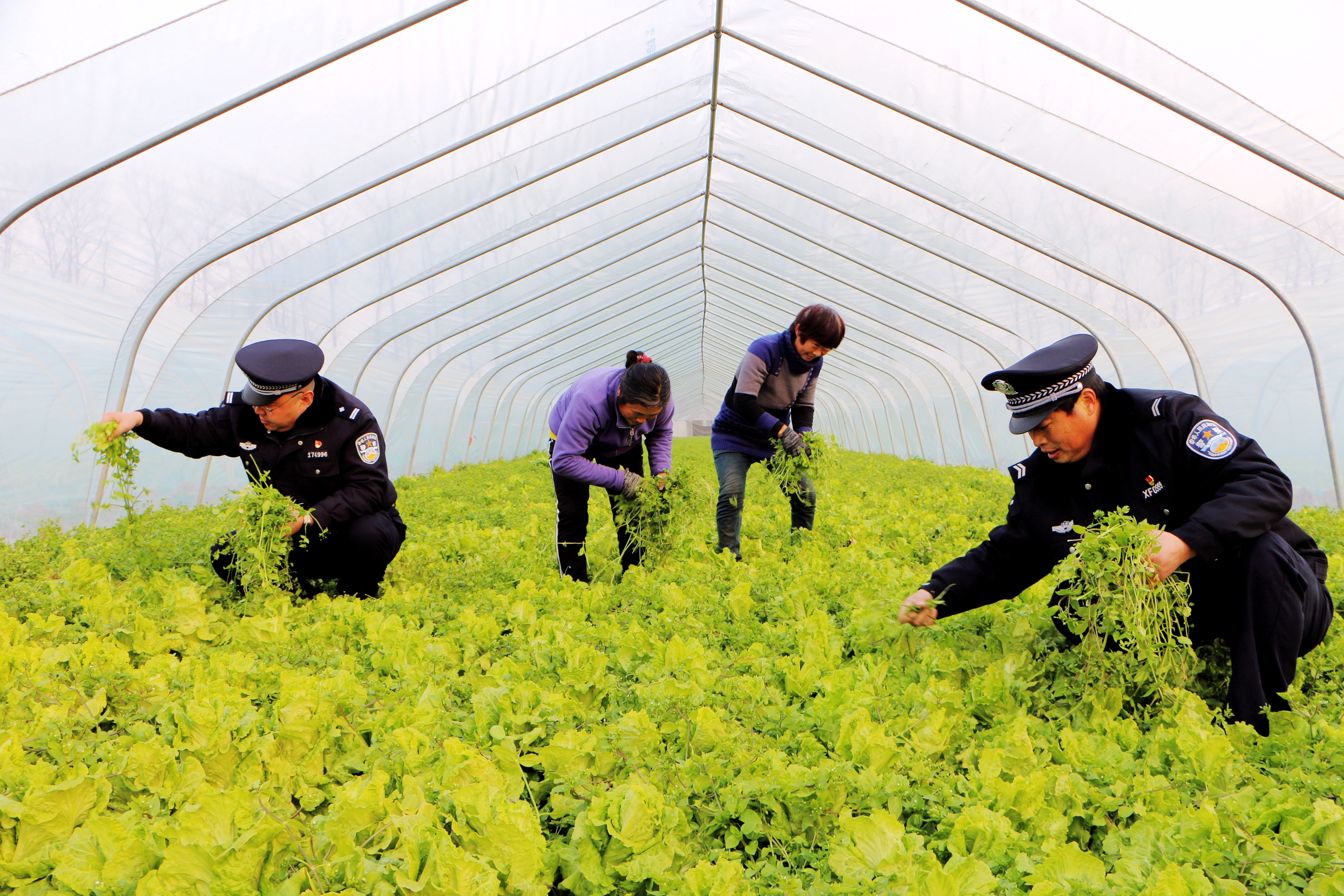 2月1日,商水縣公安局平店派出所民警到該鄉(xiāng)蔬菜種植園了解貧困戶經(jīng)濟收入情況,積極為貧困戶出點子、想辦法,爭取讓貧困戶早日脫貧。圖為民警在幫助貧困戶拔草。