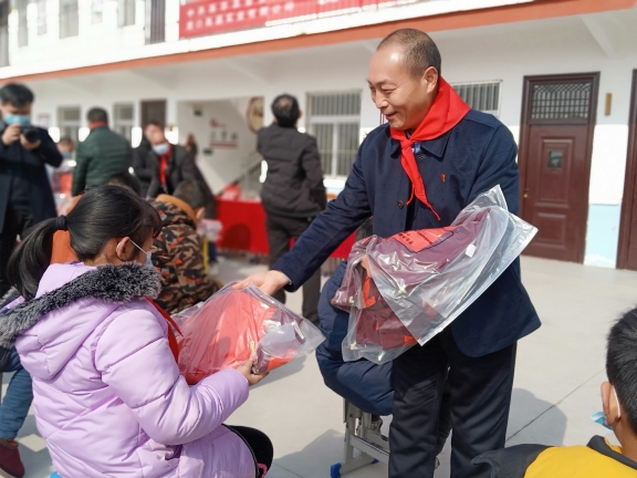 春節(jié)臨近,方凱自掏腰包6萬余元,購買164套新校服捐贈(zèng)給西華縣艾崗鄉(xiāng)半截樓小學(xué),一如既往地將大愛播撒與傳遞。說起方凱的愛心行動(dòng),那是不勝枚舉。方凱10余年來堅(jiān)持幫貧濟(jì)困,每年都采取不同的方式,為貧困戶、貧困大學(xué)生、環(huán)衛(wèi)工、留守兒童、敬老院、貧困學(xué)校、福利中心智障孩子和災(zāi)區(qū)等進(jìn)行愛心捐助,已經(jīng)累計(jì)捐款捐物達(dá)1600多萬元。為了表達(dá)對方凱的謝意,西華縣艾崗鄉(xiāng)半截樓小學(xué)向方凱贈(zèng)送了“大愛無疆育英才,心系未來報(bào)黨恩”的錦旗,同時(shí),還鄭重聘請方凱為該校名譽(yù)校長。