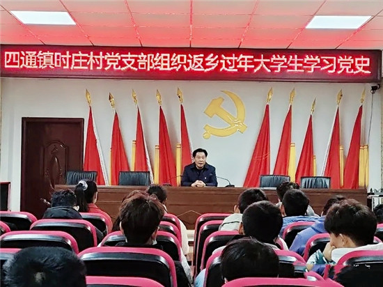 在當(dāng)日活動中,該村黨支部書記時興榮帶領(lǐng)返鄉(xiāng)大學(xué)生參觀時莊村中共黨史館,并為他們現(xiàn)場講解中國共產(chǎn)黨從一大到十九大的黨史歷程,隨后他們又一起前往時莊黨校進行學(xué)習(xí)?!爸拔覀儧]有學(xué)過黨史,也不太了解黨史,通過今天這一課,我們才真正了解到我黨的發(fā)展歷史。作為新時代的大學(xué)生,學(xué)業(yè)有成后,我們一定要報效祖國,一定要不忘初心、牢記使命,為中華民族的復(fù)興努力奮斗作出貢獻,堅決做到聽黨話、跟黨走、報黨恩。”參加活動的大學(xué)生時曼銀說。