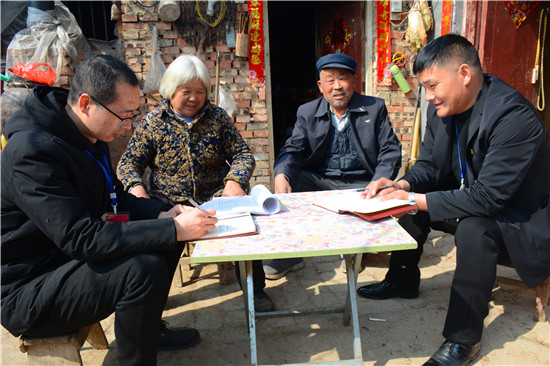 “春節(jié)前夕,有人給您送慰問品嗎?”“有啊,村干部送過了一桶食用油?!薄澳鷤兎蚱迋z個(gè)養(yǎng)老金沒問題吧?”“正常領(lǐng)取,沒有問題?!薄坝心膫€(gè)部門向您收過錢嗎?”“這不屬于非法占地,沒有人來要錢?!薄澳昵澳鷧⒓恿舜逦瘬Q屆選舉嗎?對干部滿意不?”“參加了,俺對新任干部沒有意見”......不知不覺臨近中午,邵國闖等微笑告辭。