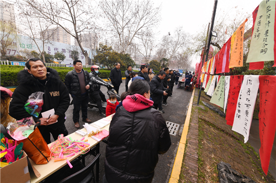 在中心城區(qū)元宵節(jié)燈謎競(jìng)猜活動(dòng)中,殷有軍是元宵節(jié)里當(dāng)之無(wú)愧的“謎王”,在2月26日上午的華威民俗文化博物苑的燈謎分會(huì)場(chǎng),他竟然猜中僅30條燈謎。殷有軍是華耀城辦事處朱莊村一組的村民,40多歲,在家務(wù)農(nóng)之際,偶爾也外出打工。他從小喜歡猜燈謎,其他沒什么別的愛好。愛讀書,愛燈謎,喜歡燈謎近乎癡迷。多少年來(lái),凡是周口舉辦燈謎競(jìng)猜,他必然到場(chǎng)。進(jìn)入燈謎現(xiàn)場(chǎng),他就沉醉在燈謎文化中,盡情享受古老傳統(tǒng)的燈謎文化?!安轮i不能靠上網(wǎng)找謎底,那就失去了猜謎的意義”,殷有軍認(rèn)真地說(shuō),從自己的知識(shí)庫(kù)里,比對(duì)謎面的闡述,來(lái)尋找謎底是一件很動(dòng)腦筋的事,也是一次系統(tǒng)的傳統(tǒng)文化洗禮。