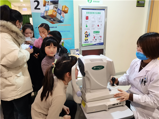 3月1日是周口中心城區(qū)小學(xué)生新學(xué)期開學(xué)的日子。2月27日,記者在建安路與育新路交叉口愛(ài)爾眼科醫(yī)院的門診大廳和視力檢查科室里看到,不少小學(xué)生在排隊(duì)檢查視力、矯正視力、調(diào)配眼鏡。據(jù)了解,寒假期間學(xué)生們的眼睛多數(shù)聚焦在電視、手機(jī)等電子產(chǎn)品上,近日快要開學(xué)了,家長(zhǎng)紛紛帶領(lǐng)孩子來(lái)到醫(yī)院檢查眼睛。②5