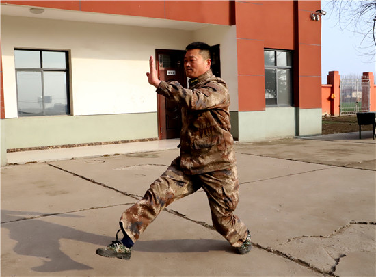 “立正!向右看齊!”3月4日,在鄲城縣民兵訓(xùn)練基地,2021年春季征兵預(yù)定新兵訓(xùn)練場上,53歲的訓(xùn)練班長王成華從骨子里喊出這句口號、集結(jié)準(zhǔn)新兵隊伍。從1992年“鐵軍”127師退伍進入人武部至今,這句口號他已經(jīng)喊了29年,始終底氣十足。同事和準(zhǔn)新兵們尊稱他為“班長王”。