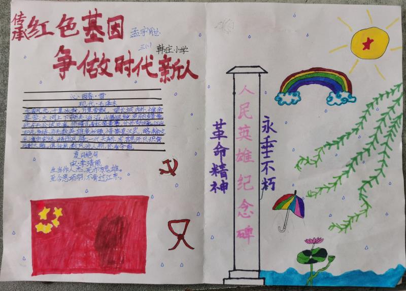 為推動(dòng)“河南省新時(shí)代文明實(shí)踐推動(dòng)周”活動(dòng)深入開(kāi)展,傳承紅色基因,爭(zhēng)做新時(shí)代好少年,日前,川匯區(qū)各中小學(xué)開(kāi)展了“傳承紅色基因 爭(zhēng)做時(shí)代新人”手抄報(bào)評(píng)比活動(dòng)。