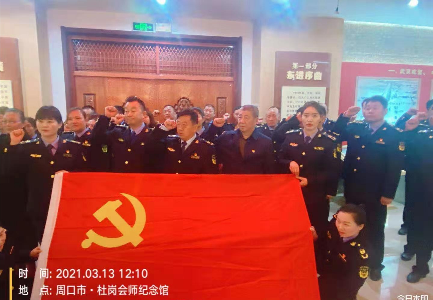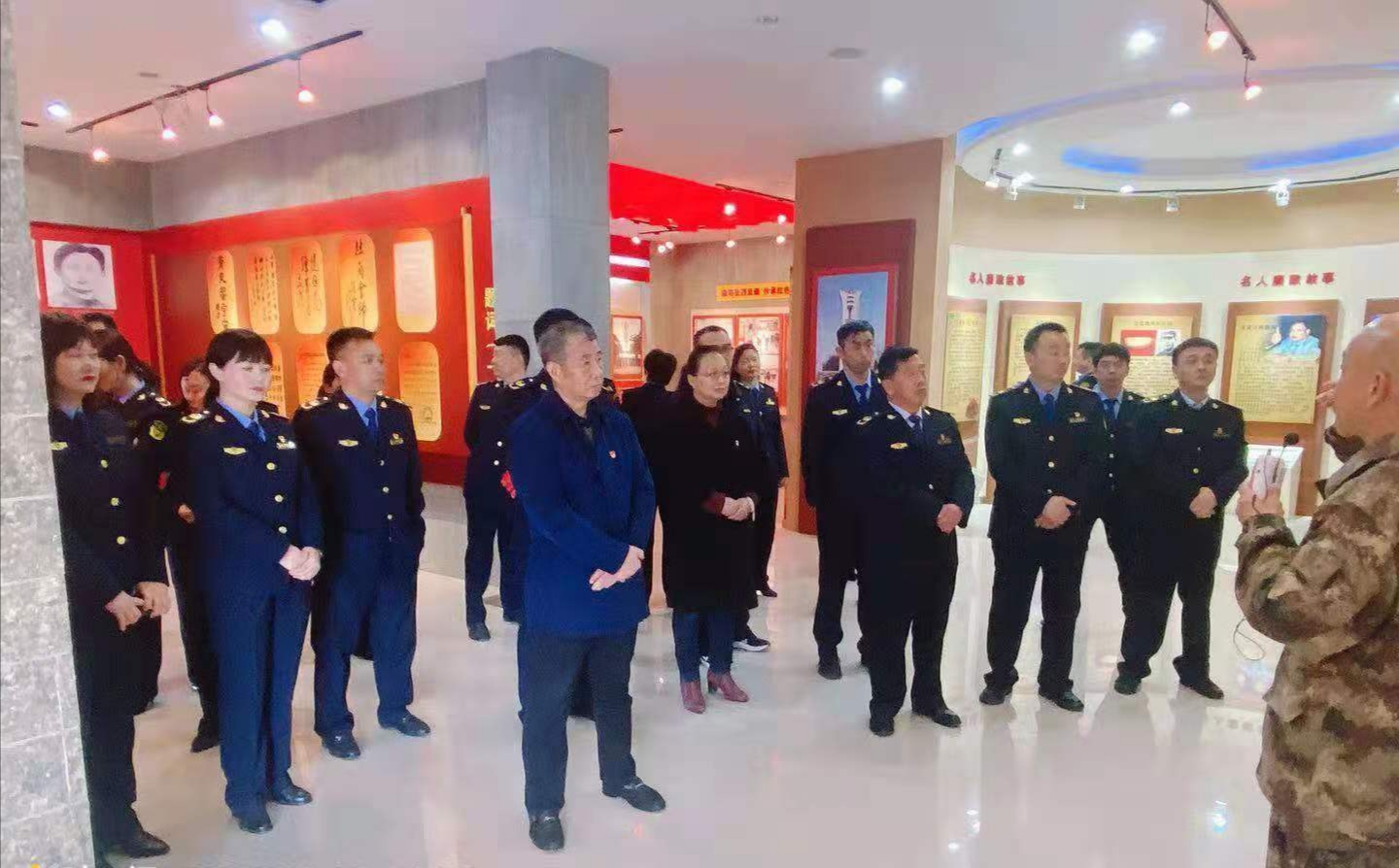 在杜崗會師紀念館,管理員朱建璽用樸實的話語為分局全體中層干部上了一堂生動的黨課。分局黨組書記李紅旗和參加教育活動的全體人員在一塊塊展板前深情駐足,認真聆聽管理員的講解,接受革命洗禮。面對革命先烈一次次豐功偉績,全體人員再次舉起右手,重溫入黨誓詞,他們莊嚴宣誓,鏗鏘有力,堅決用實際行動奮進新征程。
