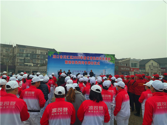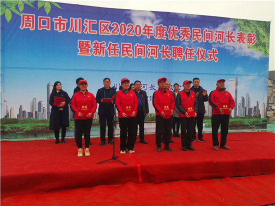 會(huì)場(chǎng)設(shè)在中州路橋北頭向東100米的沙潁河北岸。區(qū)河長(zhǎng)辦主任李海濤宣讀《川匯區(qū)河長(zhǎng)制辦公室關(guān)于表彰2020年優(yōu)秀“民間河長(zhǎng)”的決定》《周口市川匯區(qū)河長(zhǎng)制辦公室關(guān)于聘任“民間河長(zhǎng)”的通知》。與會(huì)領(lǐng)導(dǎo)共同為10名受表彰的優(yōu)秀“民間河長(zhǎng)”頒發(fā)榮譽(yù)證書,為20名新任“民間河長(zhǎng)”頒發(fā)聘任證書。