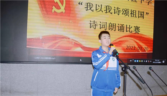 “我是你掛著眼淚的笑渦/我是新刷出的雪白的起跑線/是緋紅的黎明/正在噴薄/——祖國啊!”一句句飽含深情的朗誦,一陣陣熱情如潮的掌聲。3月20日下午,鄲城縣第二實驗中學“我以我詩頌祖國”學生愛國詩詞朗誦比賽熱烈舉行。