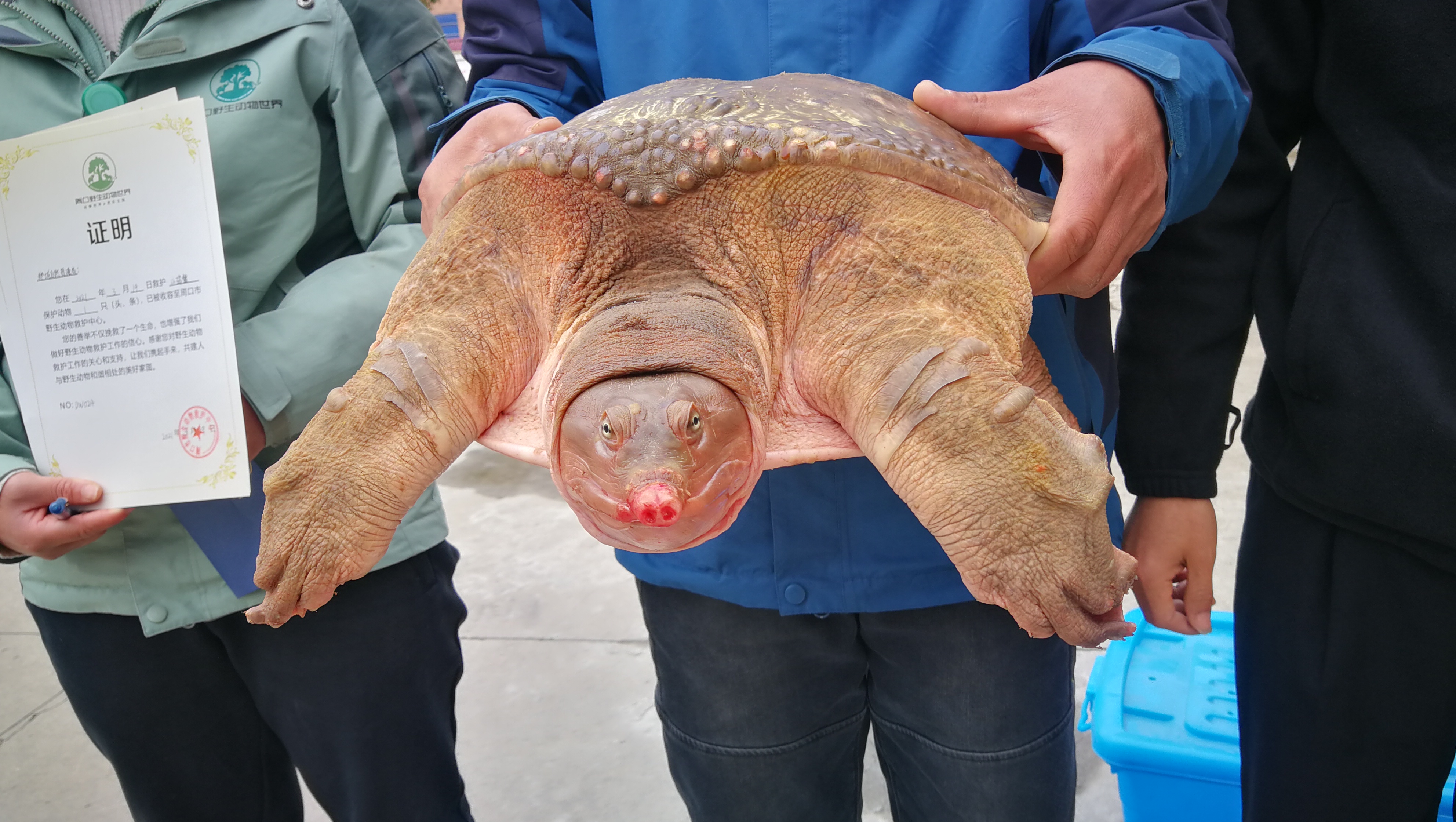近日,鄲城縣自然資源局接到縣城市管理局公園管理辦公室工作人員救助電話,稱在人民公園岸邊又發(fā)現(xiàn)一只“大老鱉”。接到救助電話后,該局領導立即指派野生動植物保護和自然保護地管理股工作人員前往現(xiàn)場救助。經過勘察,這只“大老鱉”與3月9日救助的那只山瑞鱉一樣,屬國家二級保護動物,長度達到70厘米,重量超過30斤,頭部和腳部受傷嚴重。經過簡單消毒處理后,這只山瑞鱉被送往周口野生動物救助中心進行進一步的救治。