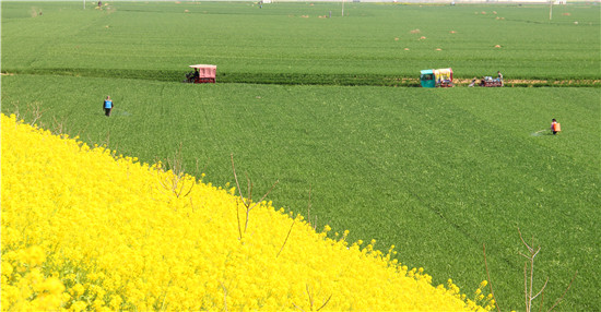 3月24日,河南省商水縣郝崗鎮(zhèn)北社村村民在管理麥田。春分到來,天氣變暖,鮮花盛開,素有“豫東糧倉”之稱的商水縣進入春耕備耕忙碌時節(jié),村民紛紛走向田野,伴著花香開展春季農(nóng)業(yè)生產(chǎn),田間地頭一片熱火朝天的繁忙景象。②7