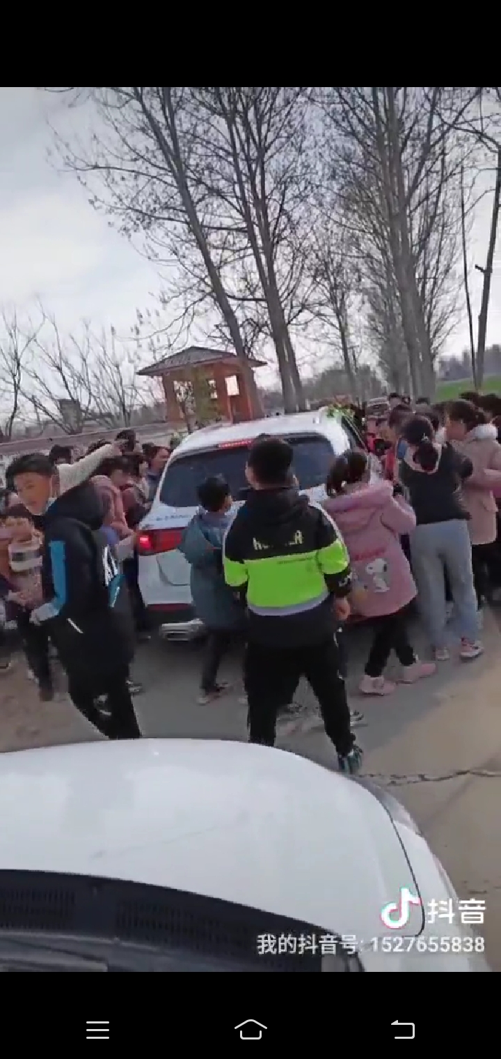 “我淚水一直在眼里打轉(zhuǎn),現(xiàn)在心情都沒(méi)平復(fù)?!苯ㄍ⑼⒄f(shuō),“因?yàn)樾菁偾敖o學(xué)生們發(fā)了喜糖,婚車(chē)路過(guò)時(shí)恰趕學(xué)生下課,正好遇見(jiàn)這群可愛(ài)的孩子,真的特別感動(dòng)。眼前的情景也讓婚車(chē)上的老公感動(dòng)不已,他忍不住拿手機(jī)記錄下了這一幕”。