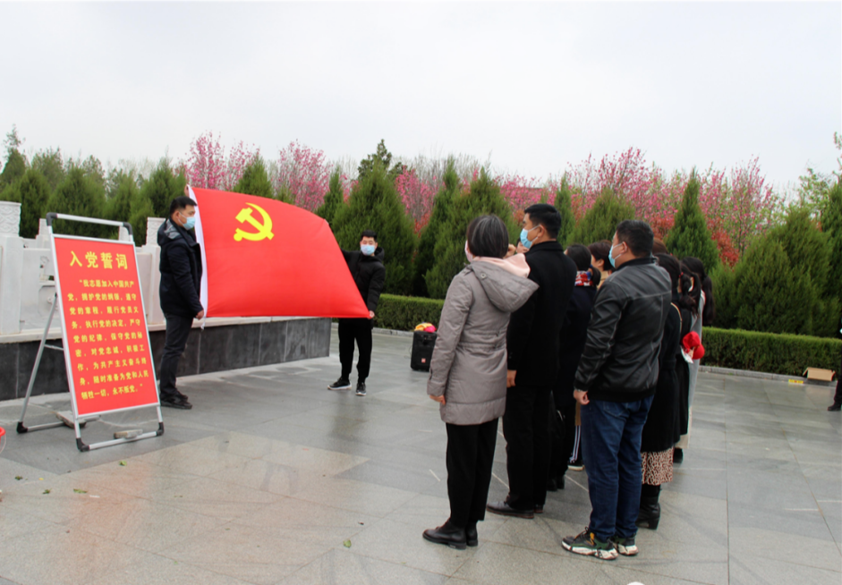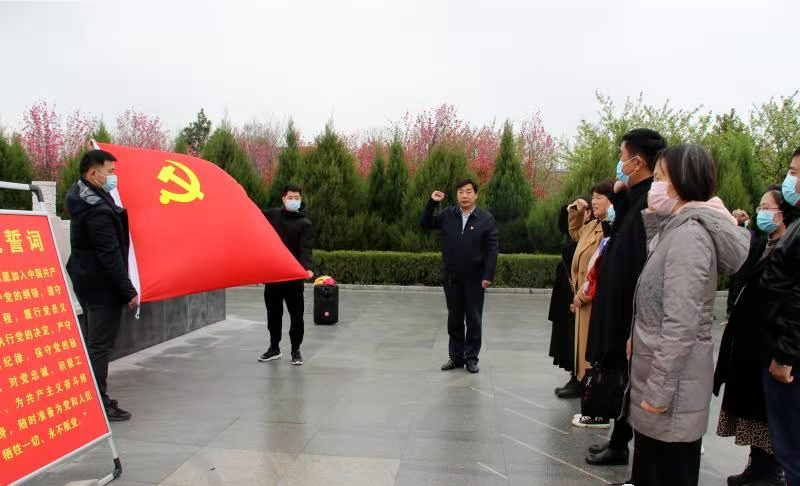 面對黨旗重溫入黨誓。隨后,大家有序?yàn)榘苍嵩诹陥@的英雄烈士擦拭墓碑、清理雜草。 大家紛紛表示,一定銘記歷史,珍惜現(xiàn)在的美好生活,以英雄為榜樣,認(rèn)真工作,以優(yōu)異成績慶祝建黨100周年。