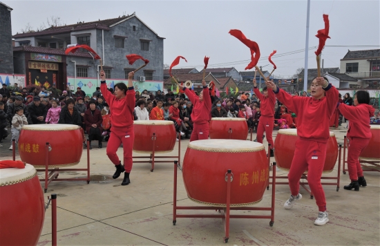 4月6日上午,商水縣黃寨鎮(zhèn)王潭行政村腰鼓隊在村文化廣場排練節(jié)目。該村近日利用清明節(jié)外出返鄉(xiāng)人員增多的機會成立鄉(xiāng)賢會,組織捐款20多萬元,作為鄉(xiāng)村振興基金,專項用于村內(nèi)環(huán)境整治、扶弱濟困、文化娛樂等。受到資助的村腰鼓隊成員表示,要繼續(xù)打好鑼、擂響鼓,助力鄉(xiāng)村振興。周口日報·周道客戶端記者 付永奇 攝