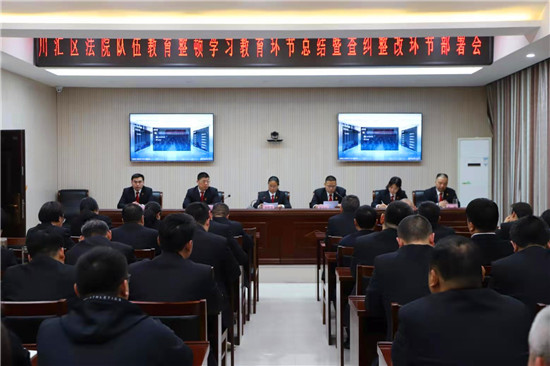 劉俊榮指出,自隊伍教育整頓工作開展以來,川匯區(qū)法院深入學習貫徹中央、省委、周口市委、川匯區(qū)委和上級法院隊伍教育整頓的決策部署和要求,在院隊伍教育整頓領導小組的領導下,學習教育環(huán)節(jié)“四項教育”的規(guī)定動作全部完成,自選動作亮點突出,學習成果轉化為思想成果和工作成果逐步顯現(xiàn)。區(qū)法院的隊伍教育整頓雖然取得了一些階段性成果,但對標方案和指導組要求還有一定差距,我們要針對差距,補短板,切實加以解決。