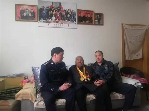一大早,該所黨員民警身著戎裝,排著整齊的隊(duì)伍,分別前往荷花路派出所轄區(qū)的閆莊社區(qū)、荷花社區(qū)、前王營等社區(qū),探望慰問年逾花甲的抗戰(zhàn)老英雄,聆聽他們?cè)诳箵羟致缘膽?zhàn)斗歲月里浴血奮戰(zhàn)、不屈不撓的感人故事。在戰(zhàn)斗英雄尤洪亮家中,民警深切感受了那場保家衛(wèi)國反擊戰(zhàn)的慘烈,看到了新時(shí)代最可愛的人。