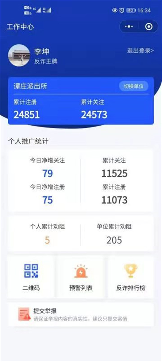 今年2月,商水縣公安局開始利用“金鐘罩”預(yù)防電信詐騙活動(dòng)。在譚莊派出所多年的李坤拿著分配給自己的二維碼,做個(gè)小牌子掛到脖子上,開始他的“金鐘罩”宣傳注冊(cè)工作。轄區(qū)企事業(yè)單位、村莊、群眾文化廣場、KTV、網(wǎng)吧、超市、洗浴中心等人員密集場所是他必須進(jìn)的地方,見親戚說、逢朋友講,三句話離不開“金鐘罩”反詐騙宣傳。