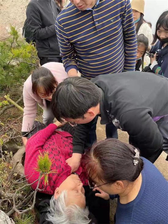 大河網(wǎng)訊 5月3日13點(diǎn)35分左右,周口市兒童醫(yī)院醫(yī)生趙一品在游覽洛陽白云山景區(qū)的途中,遇到一位突發(fā)疾病暈倒的老太太。聽到家屬呼救,趙一品迅速來到暈倒的老太太身邊,協(xié)助家屬清理了老太太口中的食物殘渣,讓病人平躺等待救援。