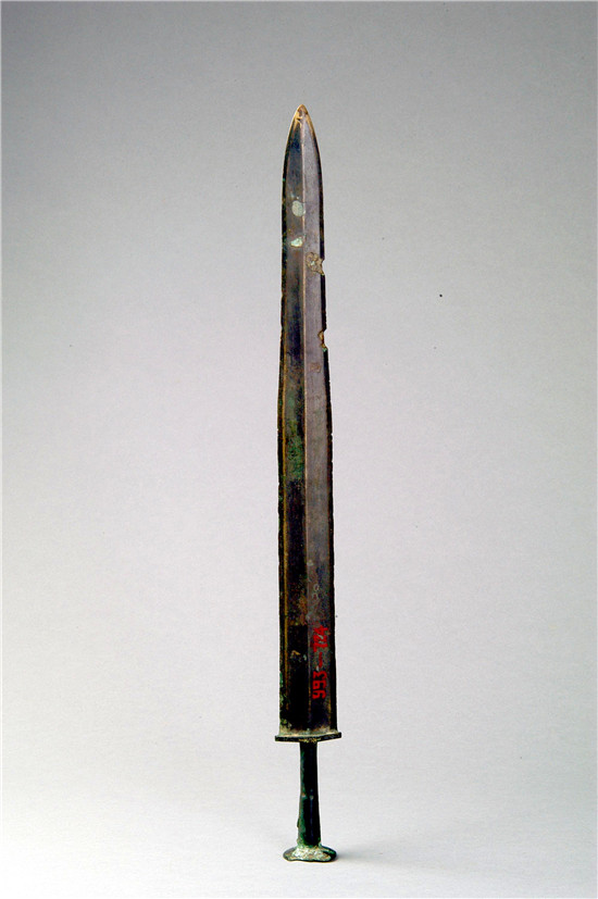 遙想這把戰(zhàn)國錯金越王劍,想必一出世就被寄予厚望,鑄造它的人一定是一位經(jīng)驗(yàn)豐富的鑄劍師。那個給予它生命的鑄劍師,一定滿懷深切的希望:“如果一個國家有一件先進(jìn)的兵器,那么天下的敵人就會因這件兵器而喪失與你戰(zhàn)斗的信心;如果有兩件先進(jìn)的兵器,那么天下守城的人就不敢再和你對抗。一定要鑄成一把絕世好劍?!彼T劍時一定專心致志,廢寢忘食,時而沉思,時而低語:“劍脊一定要軟,使用硬度較低的青銅,才能避免受到?jīng)_擊時折斷;劍刃一定要硬,使用硬度較大的青銅,才能保證殺傷力。”這把劍見證了越王不光賞賜軍士的威嚴(yán)和壯觀;見證了楚越交兵時,地動山搖的廝殺場面;見證了車轔轔、馬蕭蕭的滾滾塵煙……之后,它在地下沉睡了漫長的兩千多年。