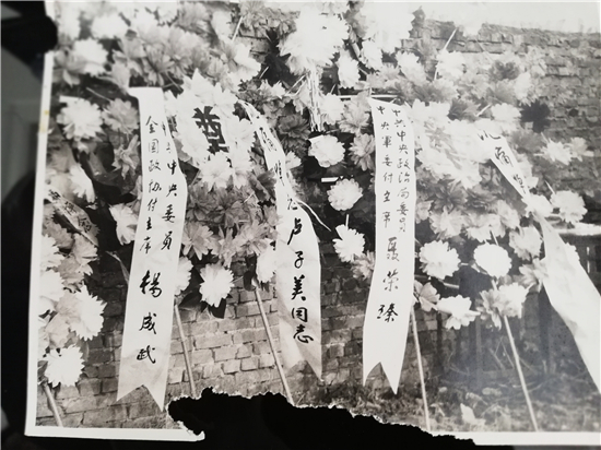 盧子美去世后,聶榮臻、楊成武、肖華等黨和國(guó)家領(lǐng)導(dǎo)人送來(lái)花圈。