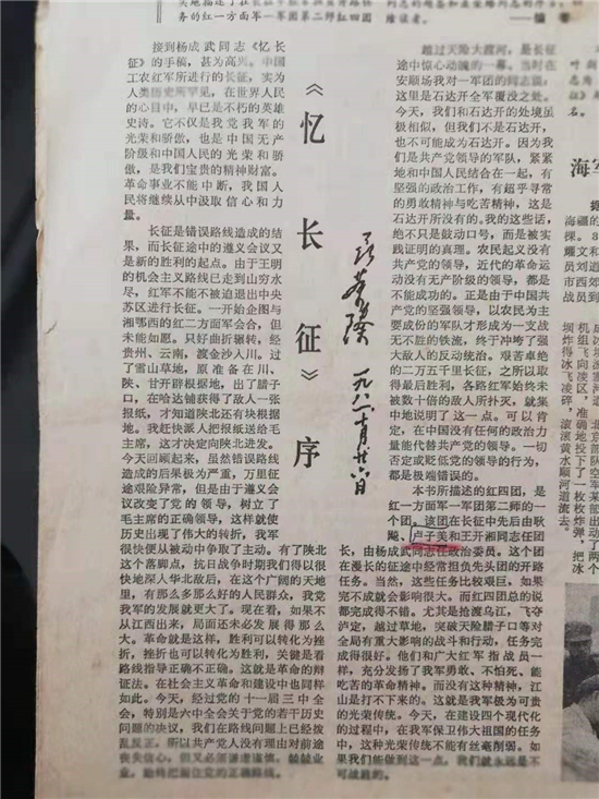 1982年3月16日,《人民日?qǐng)?bào)》《解放軍報(bào)》等報(bào)發(fā)表《憶長(zhǎng)征》序言。