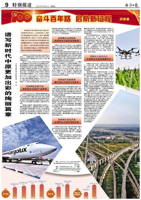 河南是我們黨開展革命活動與建立黨組織最早的省份之一,在黨的領(lǐng)導(dǎo)下,河南這片鐫刻著紅色印記的沃土,發(fā)生了翻天覆地的滄桑巨變。黨的十八大以來,河南堅定沿著習(xí)近平總書記指引的方向奮勇前進(jìn),把高質(zhì)量發(fā)展作為1億河南人民最根本的福祉,實現(xiàn)了一系列具有標(biāo)志性意義的突破。站在新的歷史起點上,河南將奮力譜寫新時代中原更加出彩的絢麗篇章。