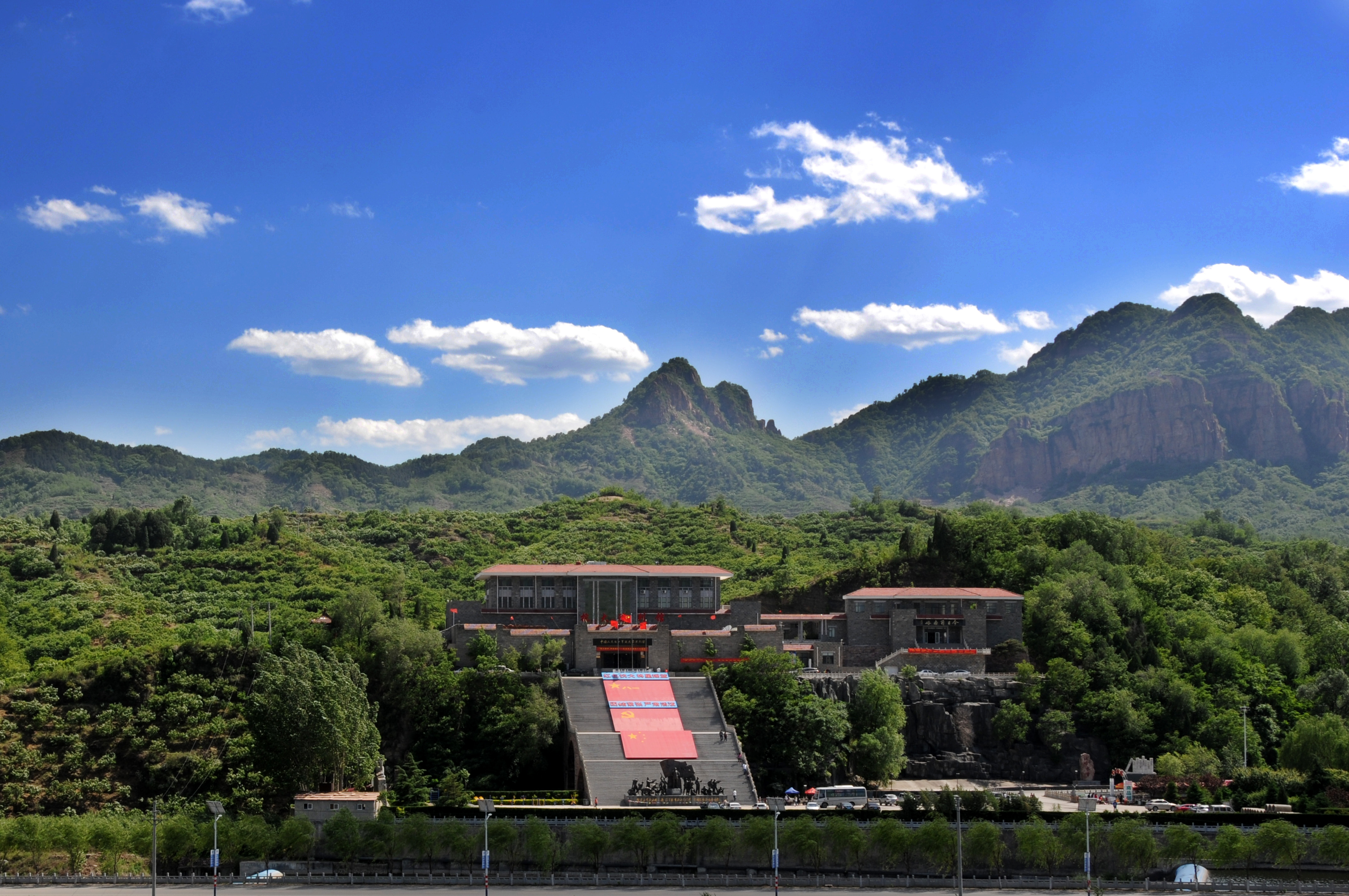 圖1:位于邢臺市前南峪村的中國人民抗日軍政大學(xué)陳列館,在群山蒼翠中巍然矗立。(圖片由中國人民抗日軍政大學(xué)陳列館提供)