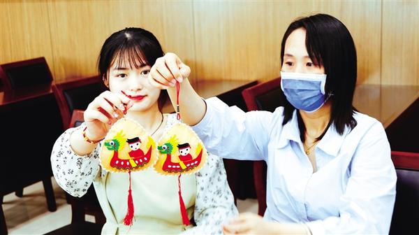 6月20日,市城鄉(xiāng)一體化示范區(qū)工作人員展示做好的香囊。當(dāng)日,市城鄉(xiāng)一體化示范區(qū)開(kāi)展“聞香過(guò)端陽(yáng) 仲夏戴香囊”文明實(shí)踐主題活動(dòng),從拼龍舟、縫香囊、畫(huà)團(tuán)扇、DIY粽子等一系列活動(dòng)來(lái)沉浸式體驗(yàn)優(yōu)秀傳統(tǒng)手工藝文化。