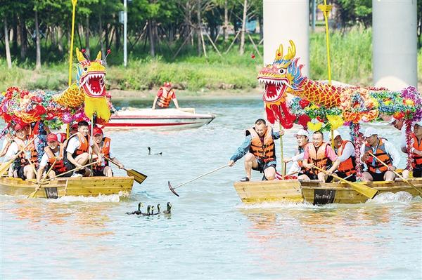 6月20日上午,周口市第八屆中華龍舟賽激烈進(jìn)行中。當(dāng)日,河南省第十一屆中華軒轅龍舟大賽暨周口市第八屆中華龍舟賽在周口市水上運(yùn)動(dòng)中心開(kāi)賽。賽前,水上拔河、翎船捕鴨等傳統(tǒng)表演讓觀眾大飽眼福。