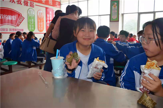鄲城二實(shí)中師生一起過端午吃粽子