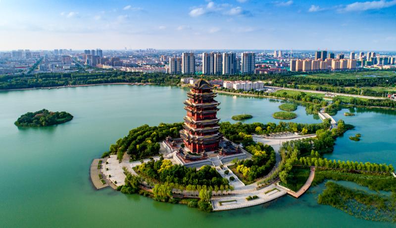 圖2:黃河樓拔地而起,成為黃河下游一座標(biāo)志性建筑。濱州正匯聚黃河新動(dòng)能,奏響生態(tài)保護(hù)和高質(zhì)量發(fā)展的黃鐘大呂。濱州日?qǐng)?bào)社記者 李默 攝