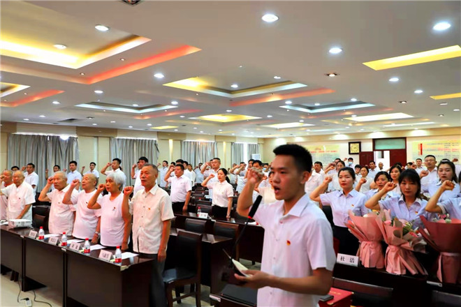 大會(huì)在莊嚴(yán)的國(guó)歌聲中拉開(kāi)序幕。隨后,全體黨員以滿腔的熱情,面向黨旗,重溫入黨誓詞。黨旗熠熠生輝,誓言鏗鏘有力,展現(xiàn)了新時(shí)代電力人為黨的事業(yè)奮斗終生的信心和決心。