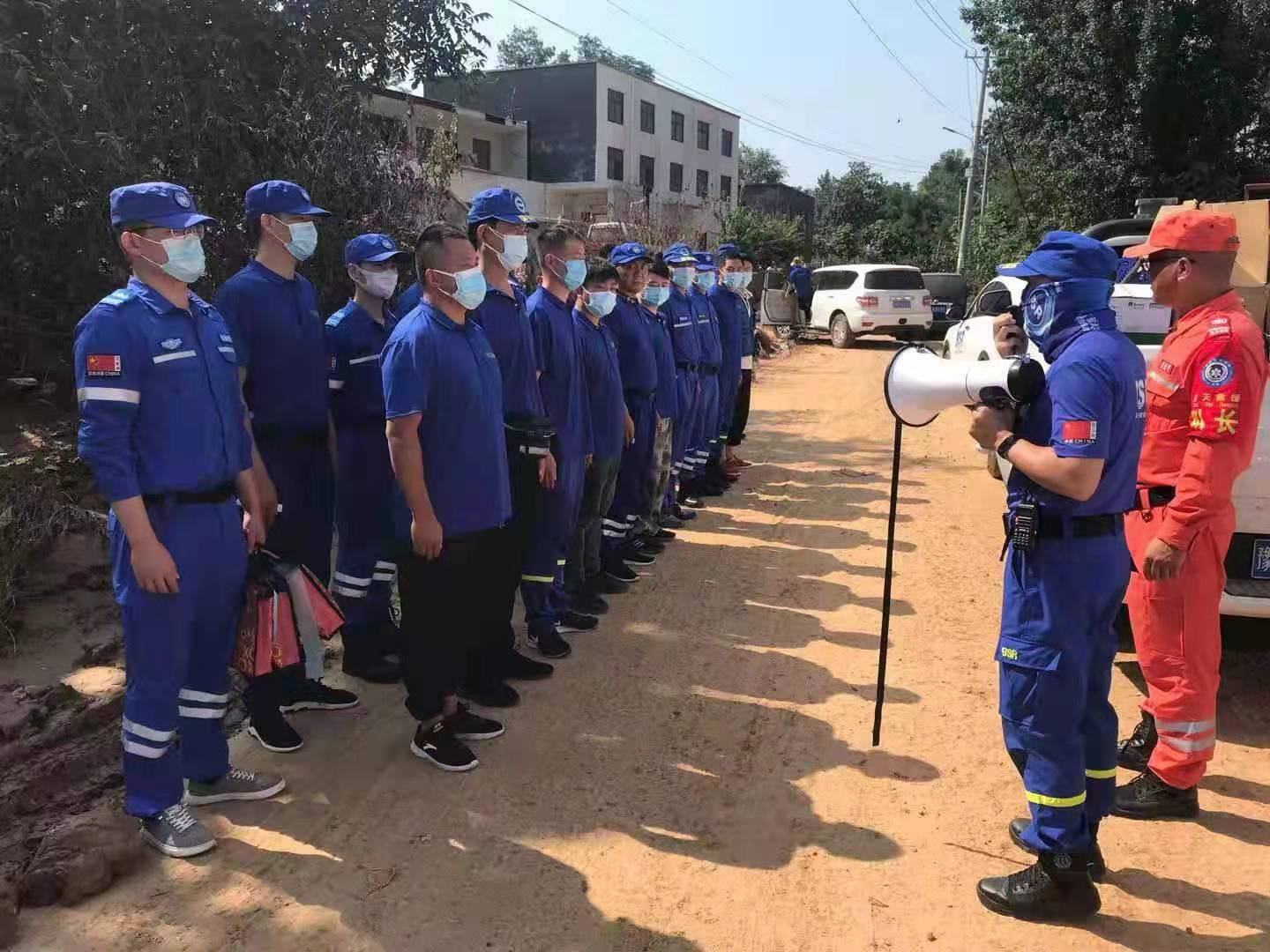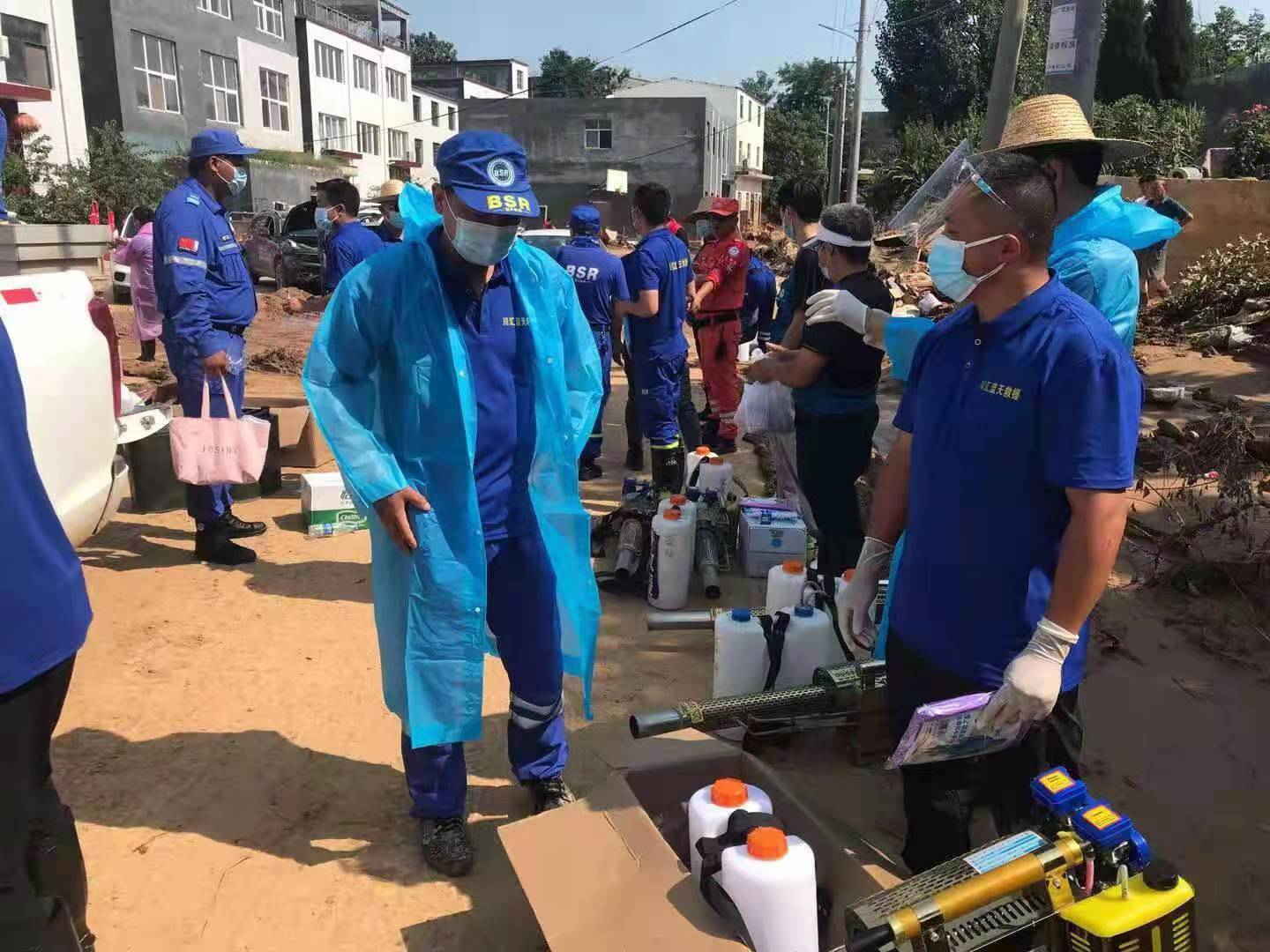 7月29日上午10時,在隊(duì)長肖永德的帶領(lǐng)下,周口川匯藍(lán)天救援隊(duì)30名隊(duì)員趕赴鄭州滎陽受災(zāi)較重的賈峪鎮(zhèn)賈峪村進(jìn)行災(zāi)后消殺工作。