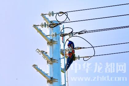 8月25日,在周口野生動物世界第二電源工程項目施工現(xiàn)場,30多名電力施工人員正在對40基桿塔引線進行校正、綁扎、緊線作業(yè)。