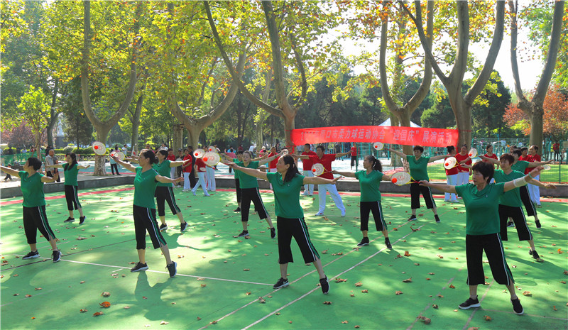 9月30日上午,市柔力球運動協(xié)會在周口人民公園內(nèi)舉行迎國慶柔力球展演活動,來自人民公園雙拍雙球柔力球隊、示范區(qū)柔力球隊、中心區(qū)柔力球隊、人民公園柔力球隊和競技柔力球隊的柔力球愛好者揮動球拍,以良好的精神風貌展示了柔力球規(guī)定套路和對抗訓練動作等,為國慶節(jié)獻禮。