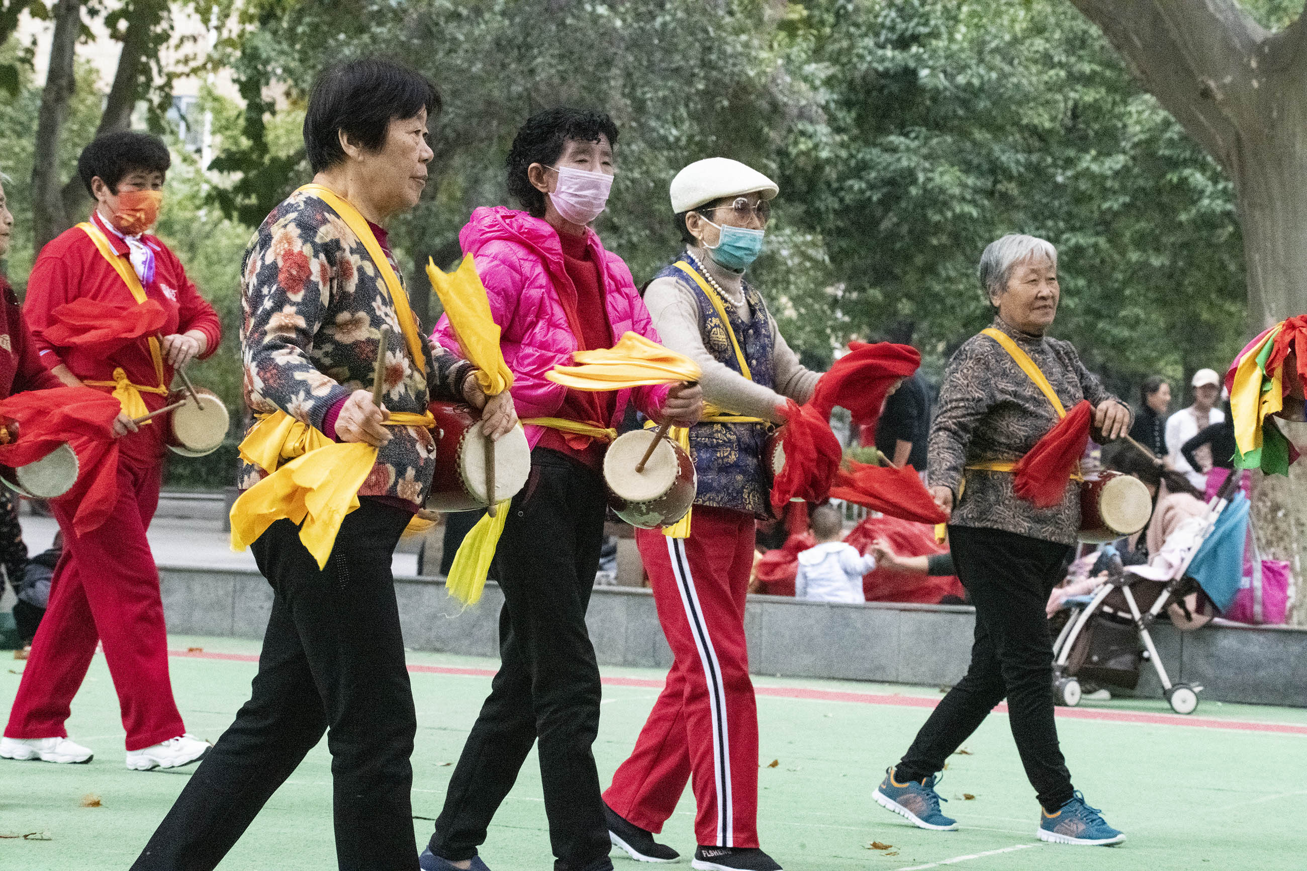 10月26日下午,在周口人民公園,老人們打腰鼓、敲盤鼓、扭秧歌,盡享晚年快樂(lè)生活。