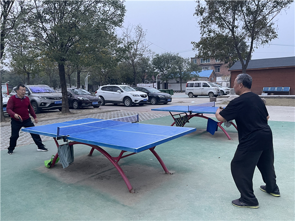 市民在弦歌文化廣場(chǎng)打乒乓球