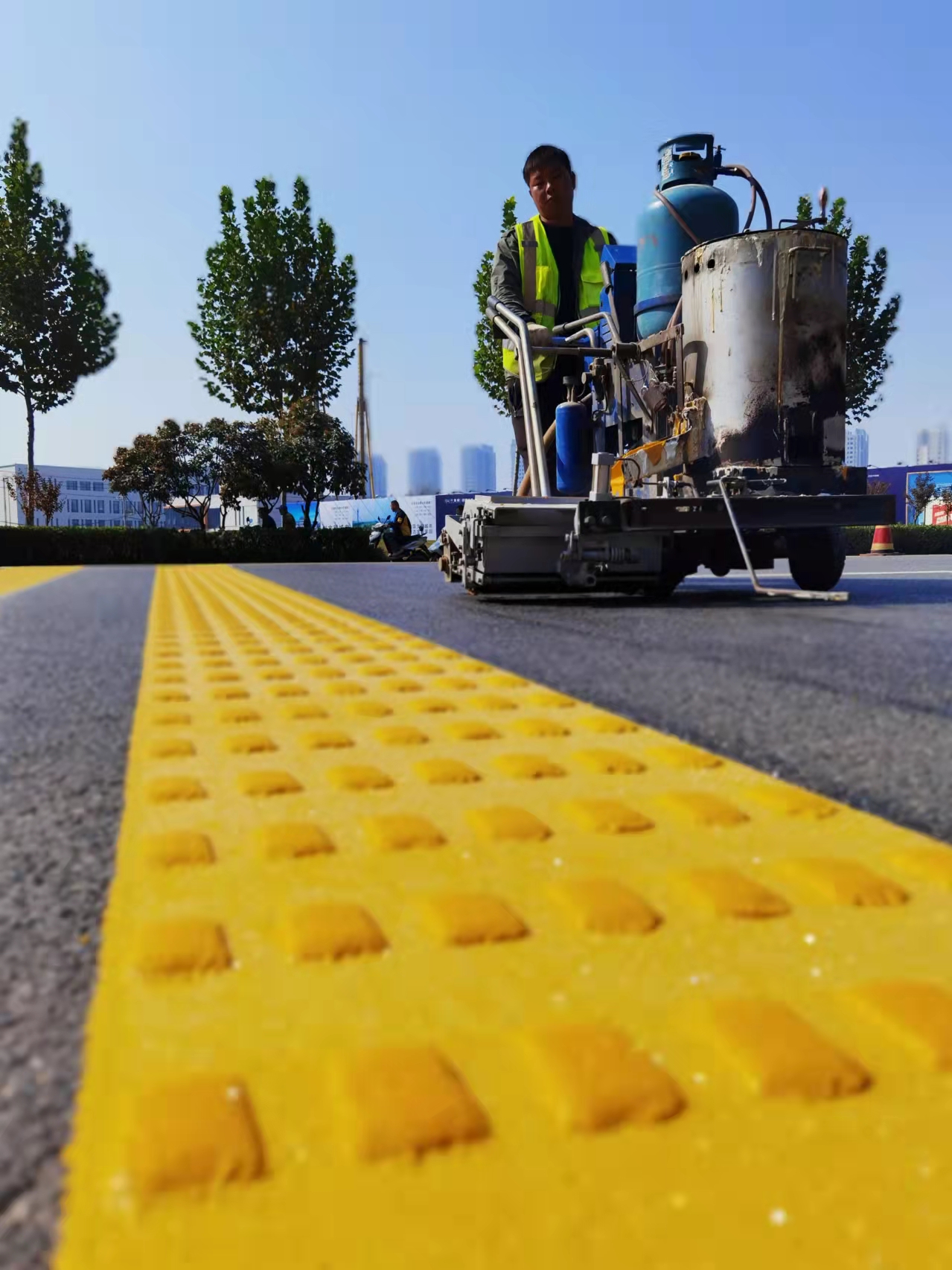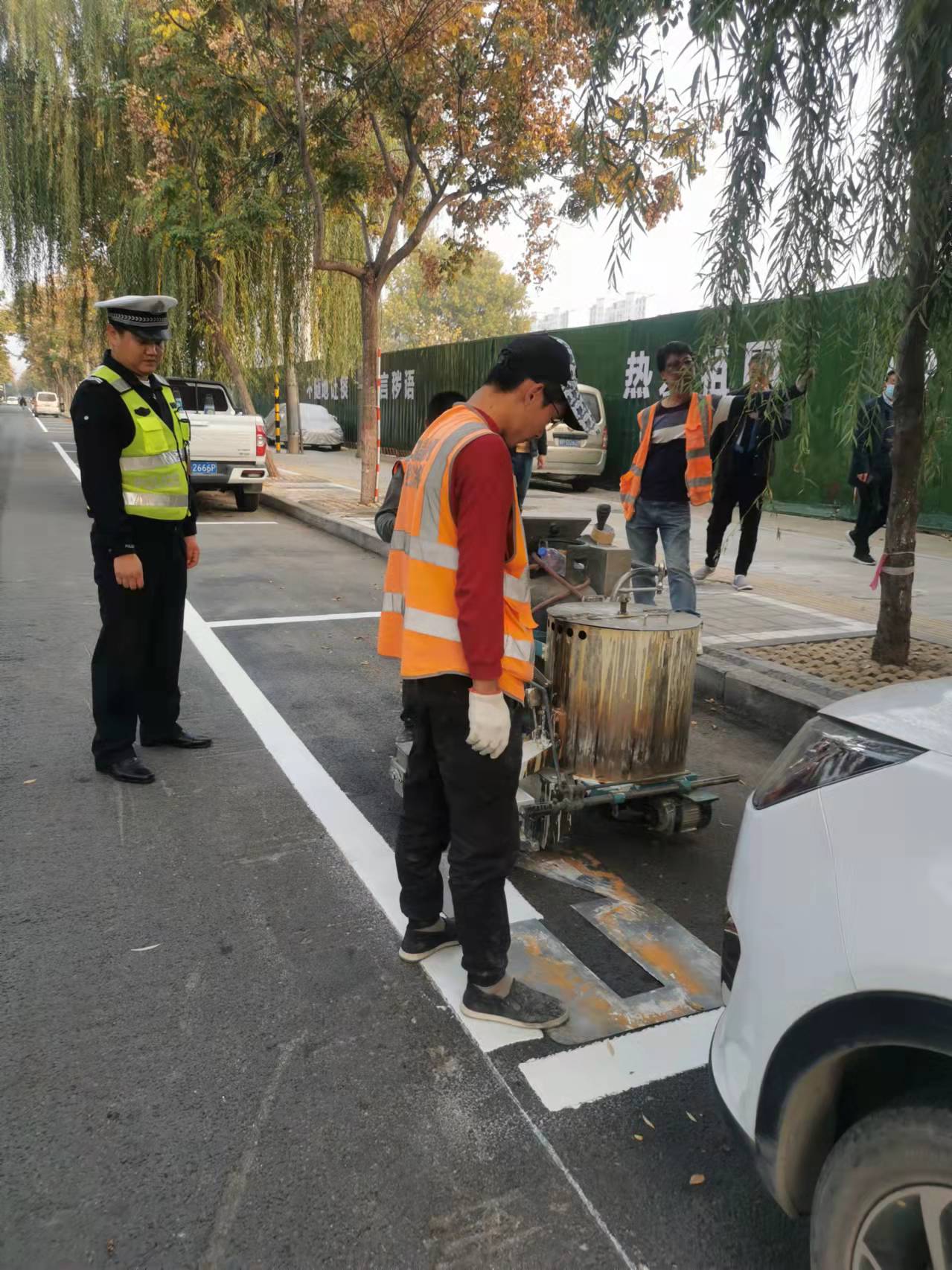 當日下午,記者在黃河路看到,施工人員正在熟練地操作標線機,認真細致地施劃減速震蕩標線。市公安局交通管理支隊設(shè)施維護中心(以下簡稱設(shè)施維護中心)工作人員黃勇說:“在創(chuàng)文期間,設(shè)施維護中心加大對道路護欄的清洗力度,完善交通信號燈的維護,清除學校門口不合理的停車位,修剪遮擋交通設(shè)施的樹枝,排除路口的交通隱患?!?/p>